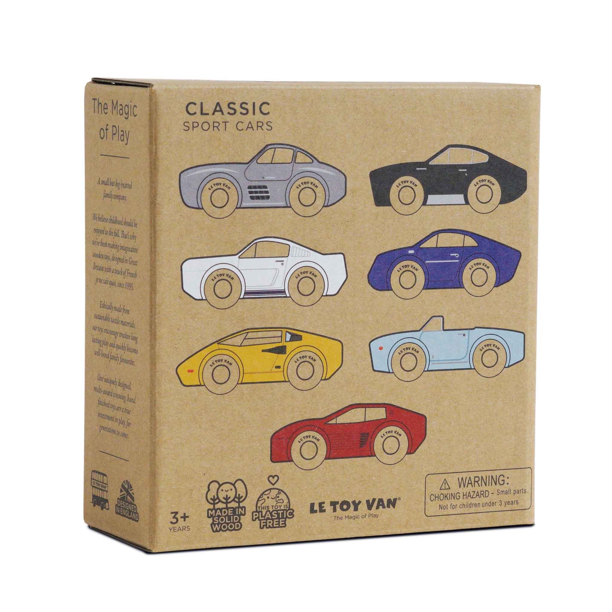 This set features 7 beautifully crafted Certified Sustainable wooden classic sports cars that are sure to ignite the imagination. Each car has been thoughtfully designed, with sturdy wooden wheels that are train track compatible with all standard tracks.