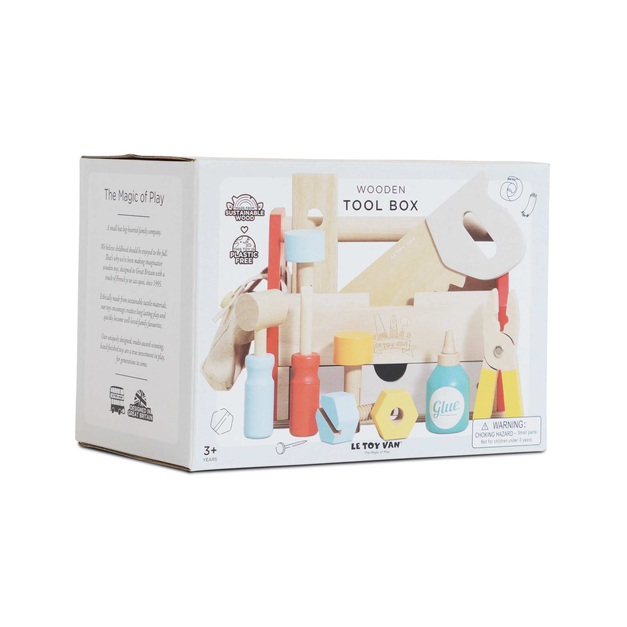 Keep eager young hands and minds busy with this traditional wooden toolbox, perfect for budding young builders and little handy people. Made from certified sustainable wood, this eco-friendly favourite is painted using water-based, non-toxic paints for child safe play.