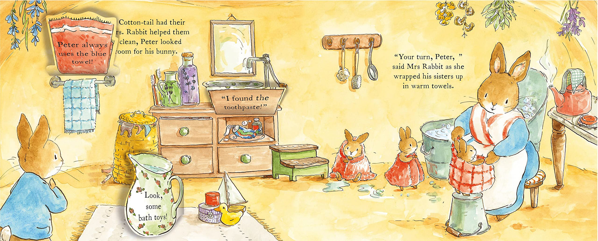 A new story with lots of fun flaps for little hands to lift as young readers explore Peter's house and help him look for his toy bunny. With a gentle narrative and cosy burrow setting, this is the perfect tale to help little ones wind down at bedtime.