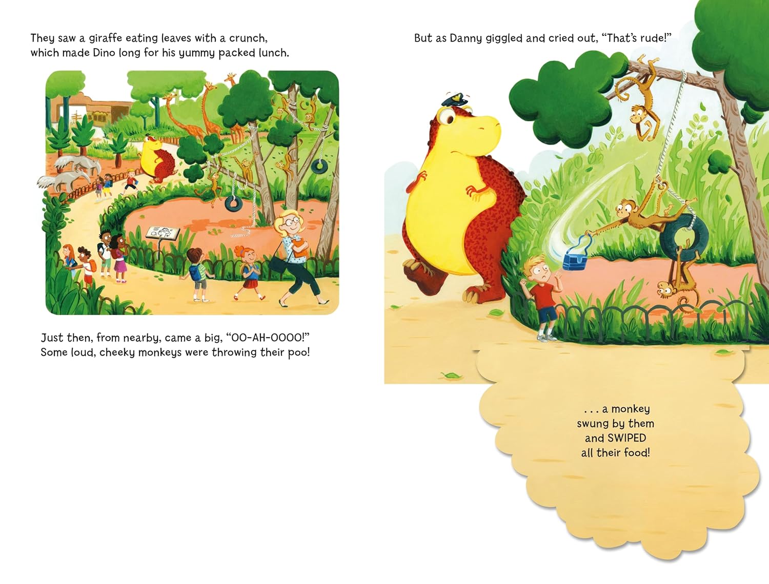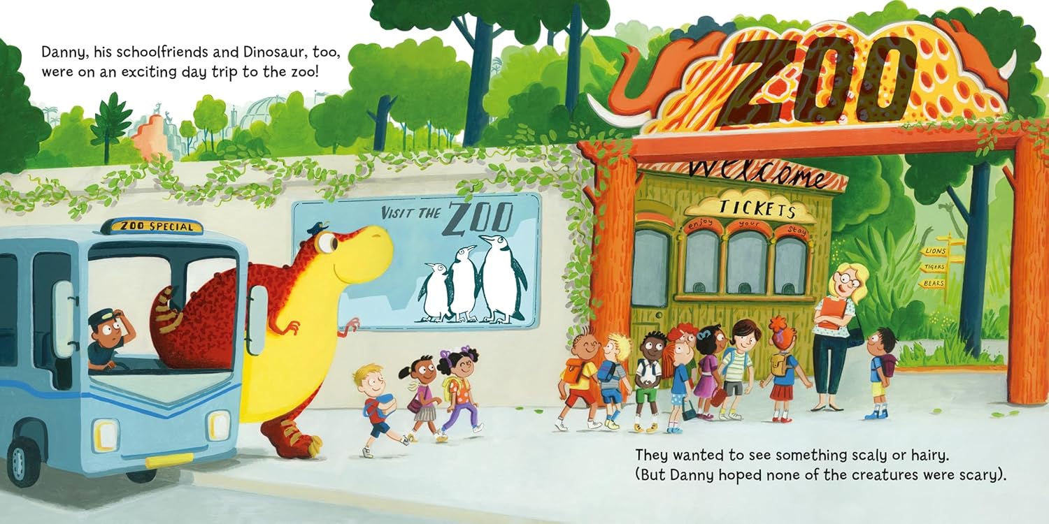 Danny and Dino are enjoying a school trip to the zoo until a cheeky monkey steals their packed lunch. They chase the monkey past parrots, zebras and rhinos, but soon get stuck in an enclosure with some very hungry lions! Can Dino's quick thinking and rumbly tummy save the day?